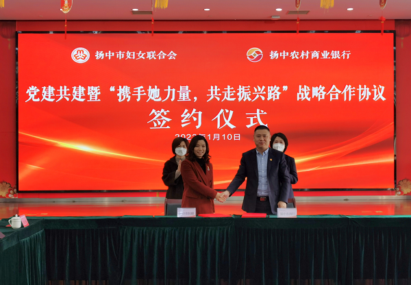 为深入贯彻党的二十大精神,全面推进乡村振兴,促进妇女发展,努力服务构建新发展格局,加快建设“强富美高”新扬中现代化建设。近日,扬中市妇联与扬中农商行举行党建共建暨“携手她力量、共走振兴路”战略合作协议签约仪式。扬中市妇女联合会主席耿晓晴、副主席奚彩、权益和发展部部长吴柳,乡镇妇联主席代表,扬中农商银行领导班子成员及部室成员,女企业家代表出席本次活动。