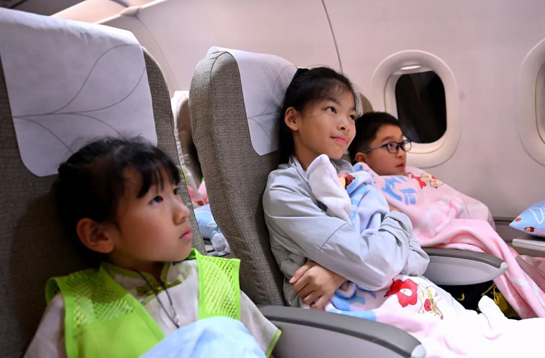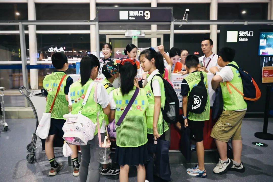 拿上专属“锡望小队”卡通登机牌,踏上儿童友好专用通道,小小代言人们在机场工作人员的引领陪同下登上飞机,一路的贴心服务,为这场研学之旅写下温暖注脚。