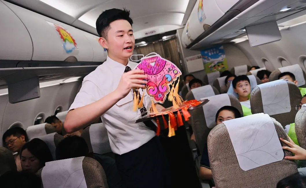 空乘哥哥姐姐们还为大家拿来了定制儿童毛毯和创意非遗手作,让万米高空成为童心绽放的趣味课堂。