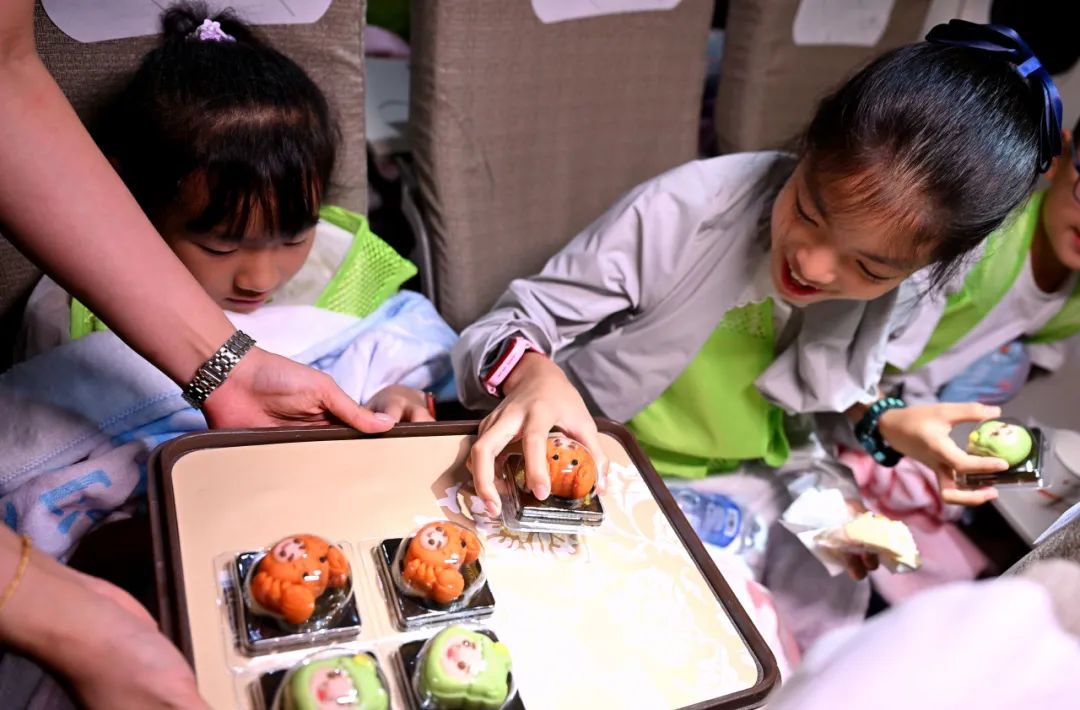 本次无锡-深圳研学,中国东方航空特别定制儿童友好航班服务,包含提供专属卡通登机牌、儿童专用登机指引牌、儿童友好专属航班中英文广播、儿童娱乐设施及机上庆生服务、节日非遗主题互动课堂与趣味礼品、儿童餐食预订服务、无陪儿童专属管家、儿童机票优惠等等。