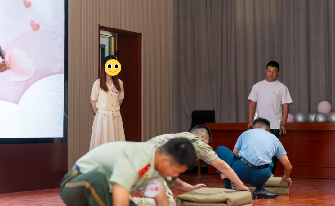 “出门看军姿,进门看军被”,在内务比赛环节,来自不同军种的官兵代表分别显身手,用力折、使劲划,用尽全力将一床床软榻被子叠得像“豆腐块”一样棱角分明,让现场的女学员们切身感受了一把军队生活的严谨与规范。据介绍,为了加强军地双方青年的相互了解,主办方在为青年学员精心准备破冰游戏、浪漫互动、3分钟约会等多个精彩互动环节的基础上,又特别安排了叠军被等一些富有军队特色的体验实践项目,以让学员们更好地释放自己、展示自己、结识朋友。