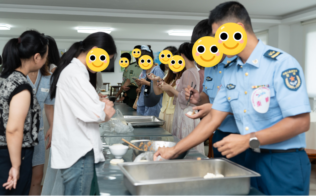 在包饺子环节中,男女青年们分工协作,有的擀皮,有的包馅,欢声笑语中,一个个形态各异的饺子承载着大家的美好期待诞生。