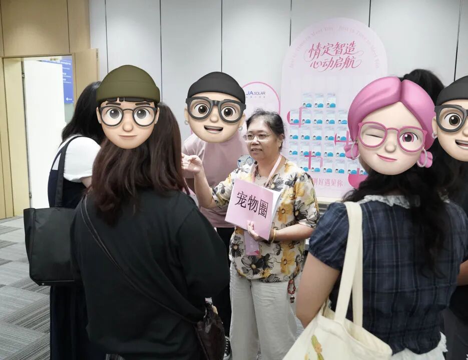 在“晶彩亮相”环节,青年们走进企业展厅,深入了解晶澳在光伏智造领域的前沿成果。不少人在惊叹于“扬州智造”硬实力的同时,也悄悄留意着身边那个“特别的人”。随后进行的“一句话自我介绍”环节,干净利落又不失个性,迅速拉近了彼此的距离。