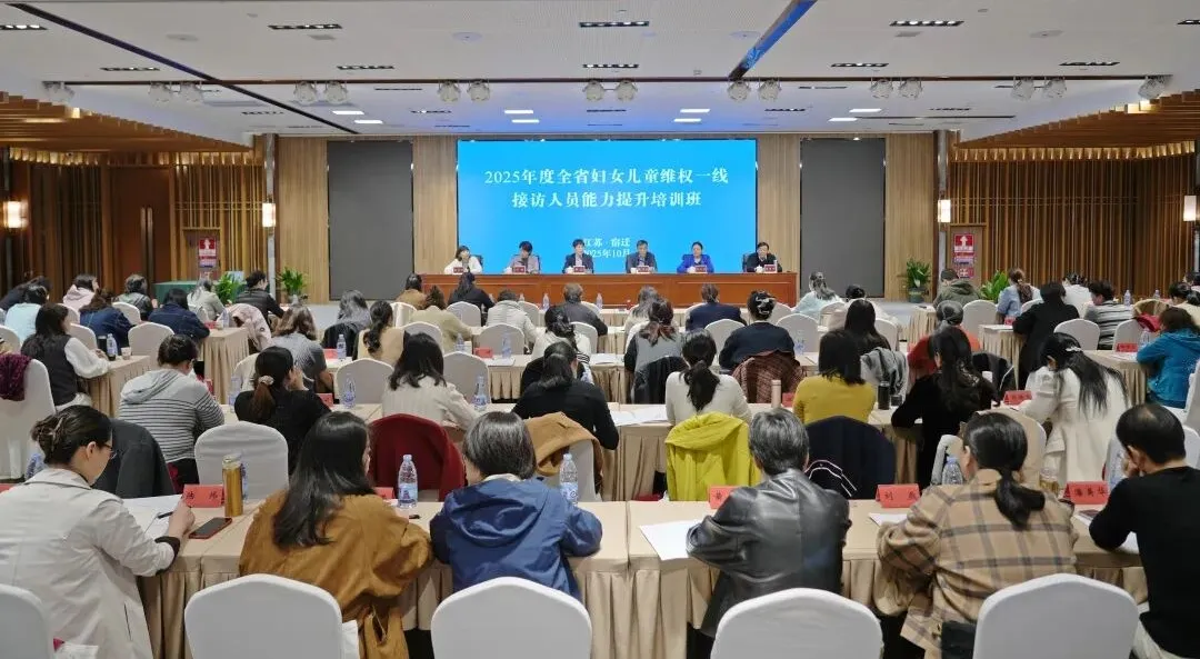 为深入落实全国妇联《关于推进12338妇联维权服务中心建设的指导意见》,推动全省12338妇联维权服务中心规范化建设,提升妇联组织维权一线接访人员的履职能力与专业水平,10月30日-31日,2025年度江苏省妇女儿童维权一线接访人员能力提升培训班在宿迁举办。来自全省13个设区市及各县(市、区)、乡镇(街道)的100余名妇联维权一线接访人员参加了此次培训。