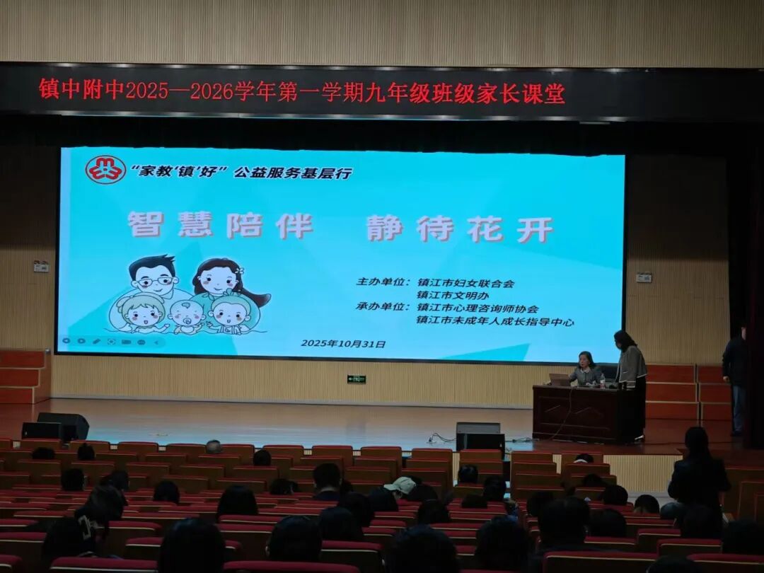 为贯彻落实习近平总书记关于注重家庭家教家风建设重要论述,为家长提供可用好用管用的家庭教育指导服务,10月31日下午,由市妇联、市心理咨询师协会联合开展的“家教‘镇’好”公益服务基层行活动走进校园,聚焦未成年人心理健康和家庭教育,为镇中附中280余名家长送去了一堂家庭教育指导课。