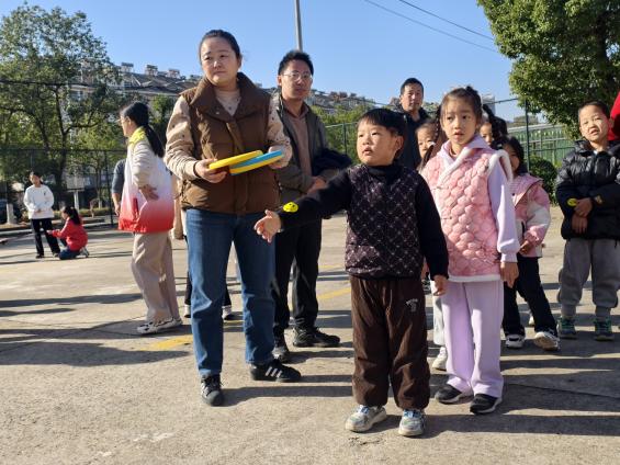 活动伊始,工作人员向参与家庭普及反家暴知识、未成年人保护法及家庭互助教育理念,并强调安全注意事项,提升家庭法治意识与保护能力。随后进入趣味十足的互动游戏环节。“飞盘嘉年华”中,家庭成员共同挑战精准投掷,在欢笑中锻炼协作;“套‘大鹅’”游戏专为儿童设计,激发童趣的同时增强亲子配合;“齐心协力”抛接球环节考验默契,促进家庭成员间有效沟通;“同舟共济”则将气氛推向高潮,各组家庭站在“船板”上协同前进,生动诠释“共渡风雨”的温暖寓意。