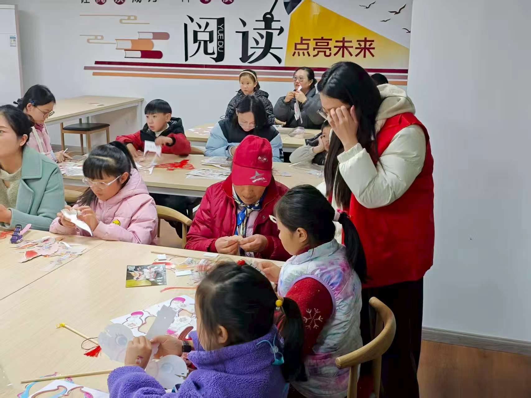 亲子家庭们围坐一桌,默契配合间尽显温馨:家长们凝神搭建灯架、穿引灯线,孩子们发挥创意,在灯面上手绘玉兔、飞马等吉祥图案。经过近一个小时的巧手创作,一盏盏造型精巧花灯相继成型。当灯珠被点亮,暖光透过绘满童趣的灯面缓缓流淌,活动室里流光溢彩,孩子们提着自己制作的花灯互相展示,欢声笑语间,浓浓的元宵氛围扑面而来。