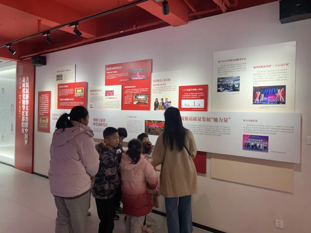 活动当天,社区儿童及家长在老师的带领下,走进江苏妇女运动教育馆,开启了一场穿越时空的教育之旅。孩子们认真聆听了场馆工作人员的讲解,沿着历史的脉络,沉浸式地学习了江苏妇女运动波澜壮阔的百年征程。