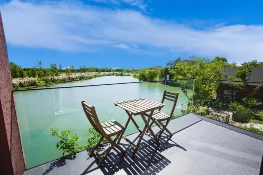 其中,萱与澜民宿于去年五一正式营业。这个名字以花为媒,以江为伴,让每一位到来的人都能在乡野的慢时光里,遇见美好,亲近自然。走进萱与澜民宿,一步一景、碧水潺潺,一幢幢名为“首阳”“绀香”“莺时”的小木屋充满传统文化的气息。民宿一开业就受到游客的欢迎,现在逢节假日,12间客房都会住满,萱草花盛开期更是一房难求。