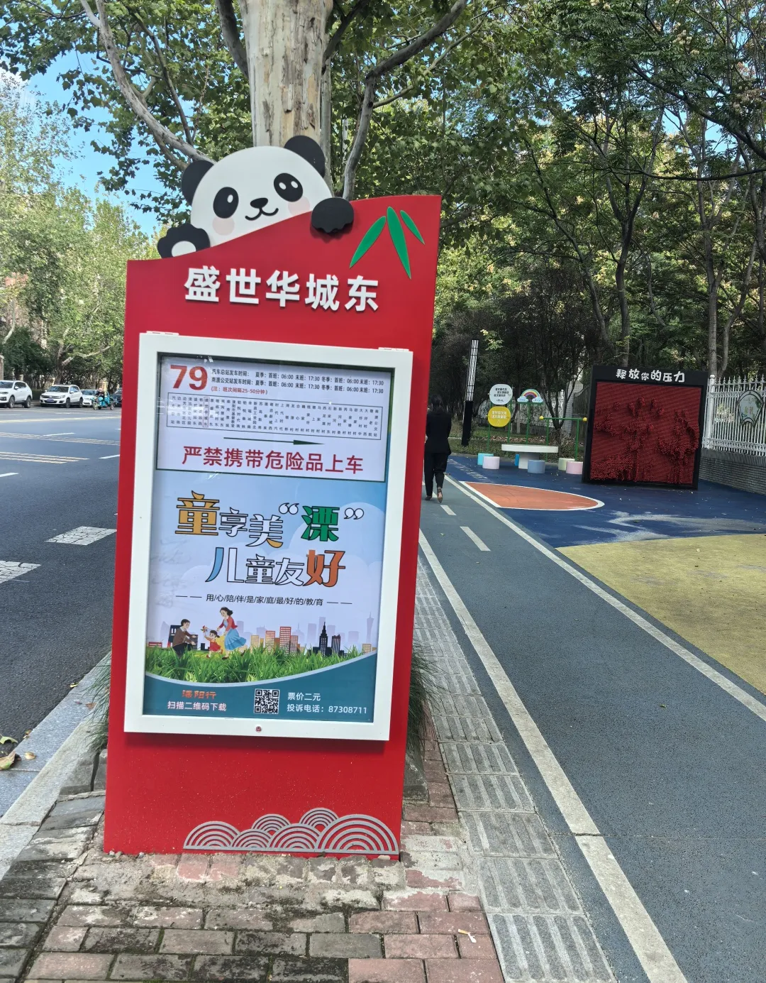 温度,藏在这条路的每一个细节里。溧阳市客运有限公司对途经的79路公交站台进行了适儿化改造,活泼的熊猫图标与明亮的色彩,让原本功能单一的站台焕发出盎然童趣。这不仅缓解了孩子们候车时的枯燥,更巧妙地将公交站点升级为“微型儿童友好空间”。另一边能量补给站的大屏幕上,持续滚动播放着家风家教宣传片,也让短暂的休憩时光成为一次润物无声的家庭教育。这些细微之处的用心,让友好理念从道路一路延伸,也让城市的温度在点滴日常中悄然传递。