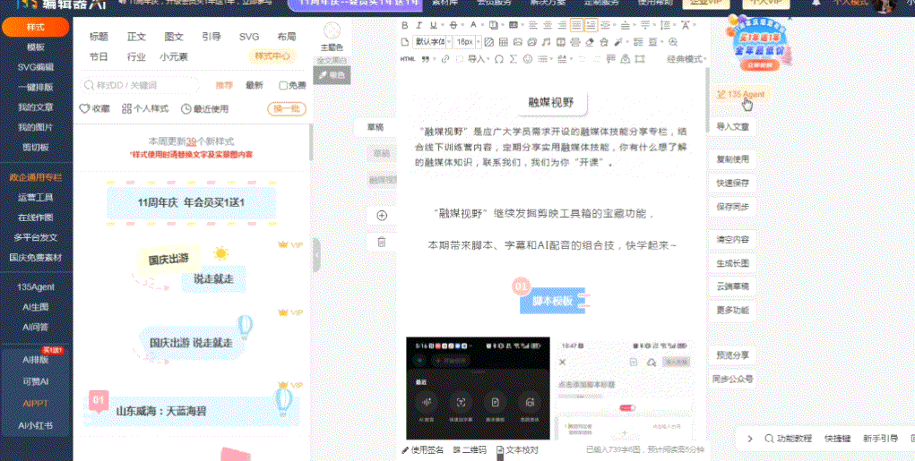 融媒视野·135编辑器篇|掌握进阶玩法:SVG编辑、135Agent和工具