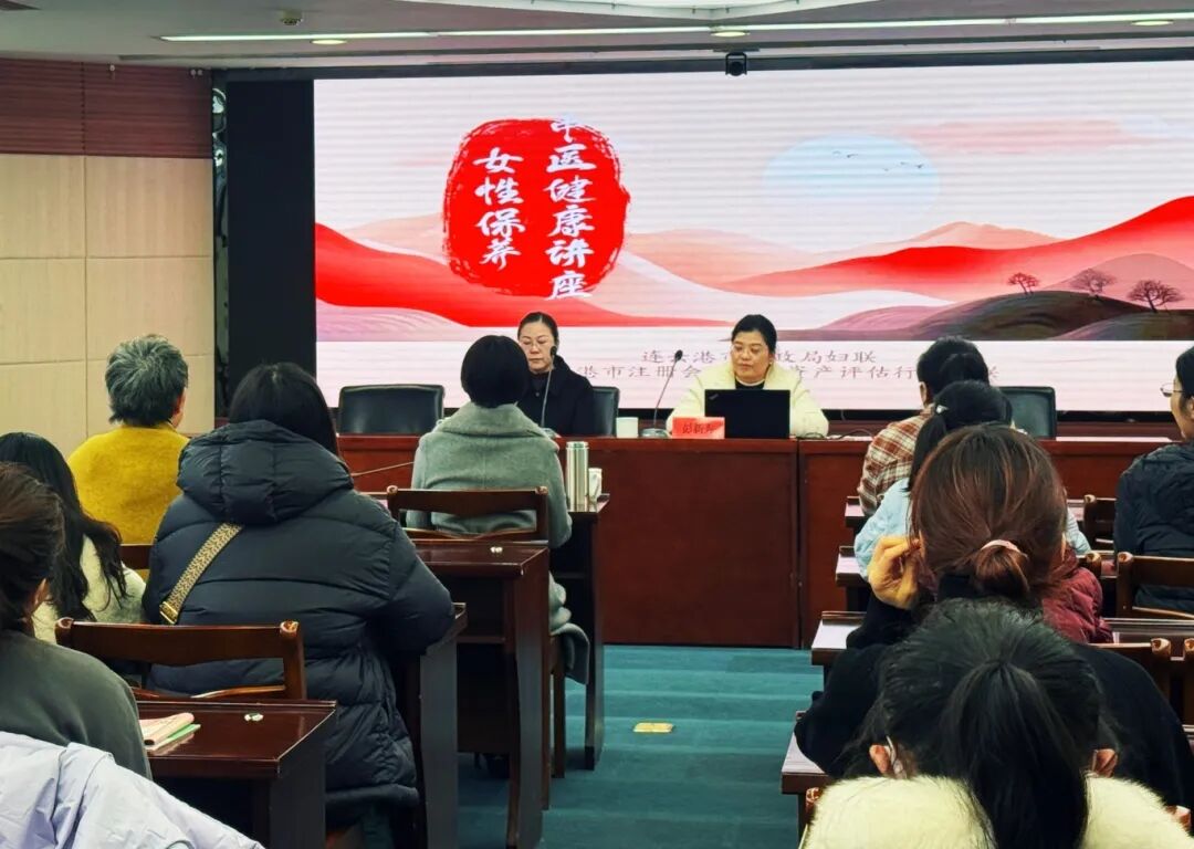 为进一步提升女性职工健康意识,普及中医养生知识,近日,连云港市财政局妇联与市注册会计师和资产评估行业妇联共同举办女性保养中医健康讲座,邀请市妇幼保健院更年期保健科彭新秀主任、中医科何艳主任担任主讲嘉宾