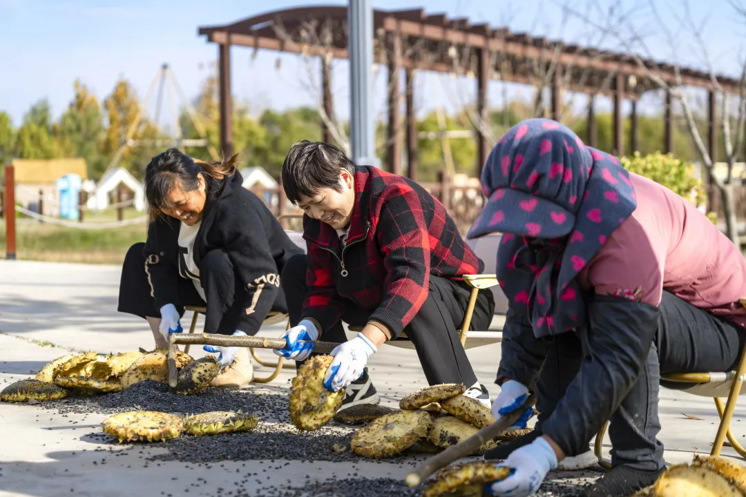 近日,盐城市亭湖区黄尖镇兴农村千亩葵田的秋收工作已圆满收官。为庆祝丰收、凝聚巾帼力量,黄尖镇妇联抓住农闲时机,在兴农村鹤龙农场组织开展了“金葵丰收产业旺,巾帼竞技促振兴”向日葵丰收季特色活动。本次活动