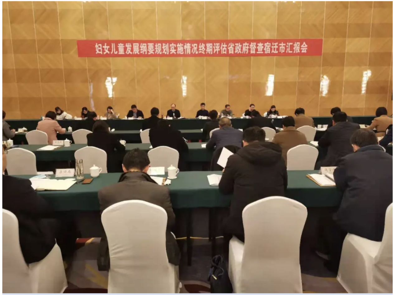 25日上午,召开妇儿发展纲要规划实施情况终期评估省政府督查宿迁市汇报会,省督查组听取了我市实施“十三五”妇女儿童发展规划情况的汇报,市政府妇儿工委有关成员单位围绕妇幼健康服务、教育发展、妇女就业、社会保障、权益维护等工作开展情况做了交流发言。省督查组充分肯定了我市妇女儿童工作取得的成效,并希望我市科学谋划“十四五”妇女儿童工作,推动全市妇女儿童事业持续发展。