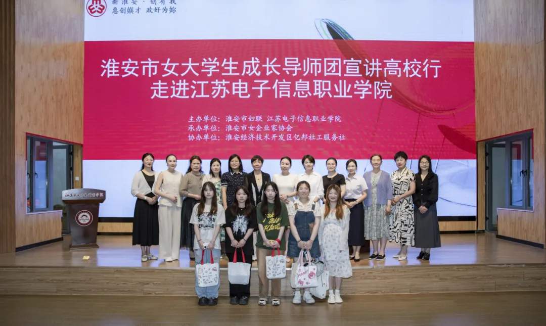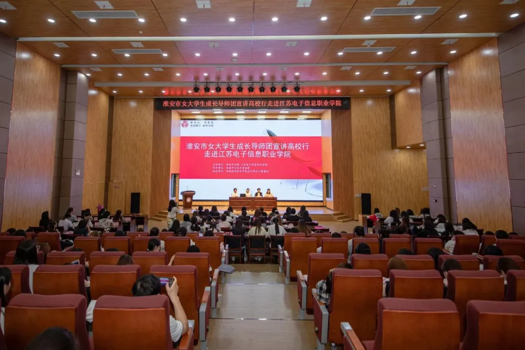 为落实习近平总书记重要工作要求,引导女大学生树立正确的就业观念,促进高质量充分就业,近日,淮安市女大学生成长导师团宣讲高校行活动在江苏电子信息职业学院顺利举行。