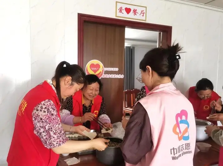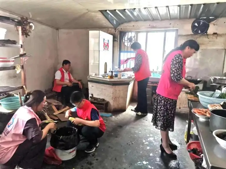 当天早上6点钟,吉坝乡连爱心协会殷建峰会长就去菜市场精心挑选孩子们喜欢吃的新鲜食材:、鸡肉、虾、鹌鹑蛋、榴莲酥以及包馄饨的材料等,还并搭配好时令蔬菜;爱心妈妈们也早早赶到协会的爱心餐厅动手准备午餐:70岁的殷锁林夫妇满头大汗地忙着劈柴烧锅、洗餐具;爱心妈妈殷小红、殷焱、何羊培和儿子负责择菜打下手;爱心奶奶陈晓云和马灿云负责烧菜、拌馄饨馅;会长殷建峰、爱心妈妈姚丽和张文丽负责陪小朋友学骑自行车、做游戏、参观雷锋史料微展馆,陪孩子谈心聊天,做好安全照顾工作;大家分工合作、忙得热火朝天,到11点多10个菜就烧好了,4大盆的馄饨也整整齐齐包好完工,值得表扬的是在读六年级的困境儿童小雅(化名)还主动参加帮忙包馄饨!热气腾腾的饺子出锅啦!孩子们和爱心妈妈们开开心心地围在一起聊天品尝着......,看孩子们吃的那么香、那么津津有味,爱心妈妈、服务队志愿者脸上也露出了幸福的笑容。