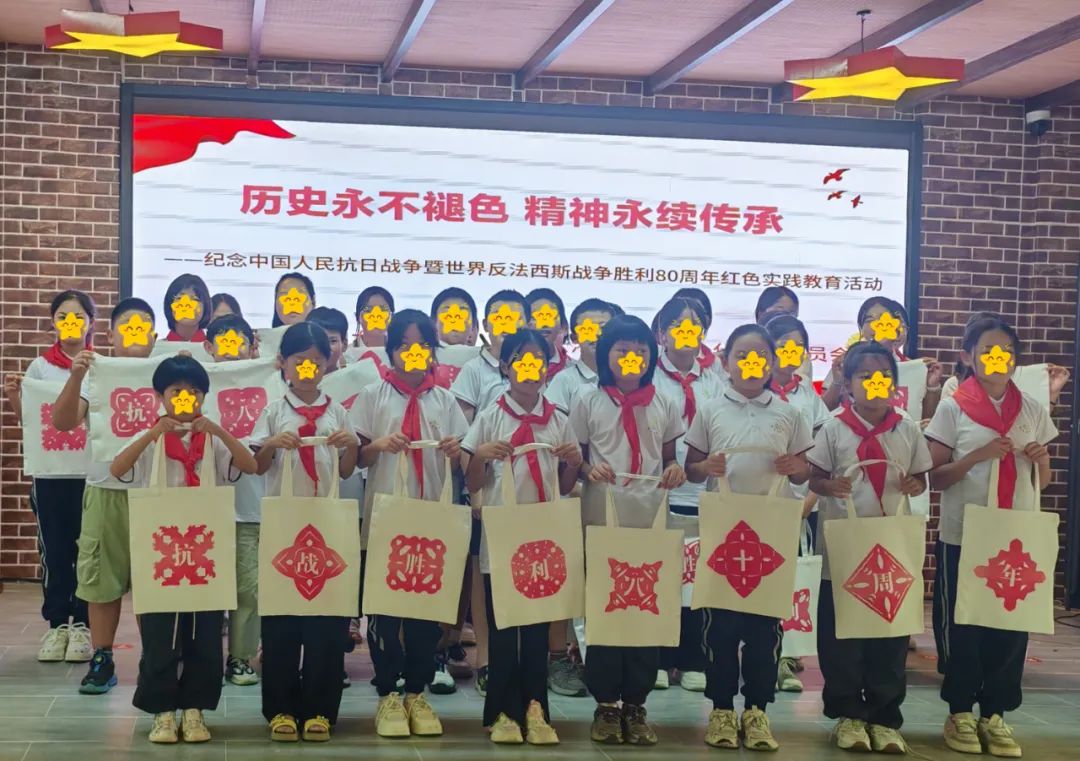 午后,细雨渐起。党群服务中心的教室里,热转印机滋滋作响,一场别开生面的剪纸非遗体验正在进行。孩子们用稚嫩的小手在红色纸张上设计剪出“抗战胜利八十周年”的字样,小心翼翼地用热转印机印在布袋上,让红色记忆留驻指尖。灌南县汤沟镇中心小学“海生草”班的欣悦(化名)捧着印有“战”字的布袋说:“我要天天背着它,就像带着历史在身边。”
