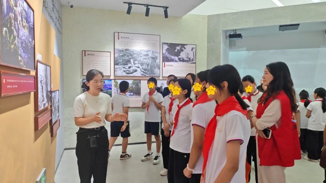 随后,折返至第二坡段的革命烈士纪念馆。馆内陈列的汉阳造步枪、带血的军号和泛黄的作战地图,将孩子们带入了硝烟弥漫的战场。在“青口十八勇士”展区,玻璃柜中那面布满弹孔的军旗让孩子们屏息凝神——这是1941年青口战役中,战士们用生命守护的战旗。接着,纪念馆讲解员指着展厅里的锈迹斑斑的步枪,“这把三八式步枪,是战士李二喜用过的,他一人炸毁3个日军碉堡,最后牺牲时才21岁……”讲解员的声音在孩子们的耳畔久久回荡。