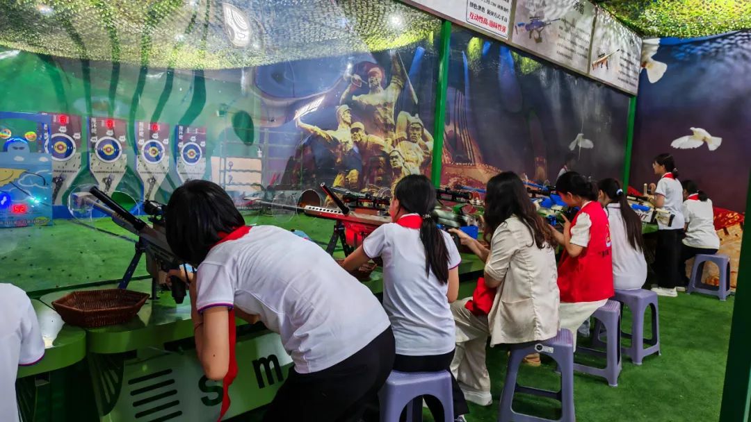 实践体验环节,模拟射击场上,专业教练正示范持枪动作:“瞄准要三点一线,就像做人要目标坚定。”10岁的恩恩(化名)屏息凝神,扣动扳机的瞬间,他忽然想起纪念馆里“神枪手张桃芳”的故事——上甘岭战役中,张桃芳用普通步枪歼敌214名,靠的正是这份专注。而“飞夺泸定桥”体验区,孩子们抓着钢索向前攀爬,脚下的“硝烟”升腾而起,“原来先烈们冒着枪林弹雨过桥,比这难一万倍!”气喘吁吁的珊珊(化名)抹着汗说。