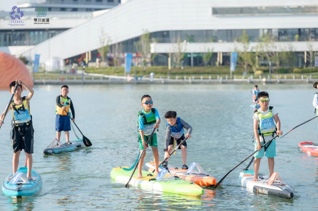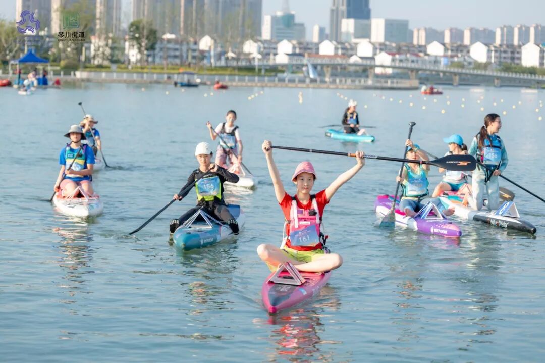 琴湖的平静水面、清澈水质,是亲子家庭天然的理想运动场。琴川街道敏锐捕捉到“小众赛道”的机会,引进立航水上运动中心,推出“亲子同板”课程,让中国桨板公开赛落地琴湖。