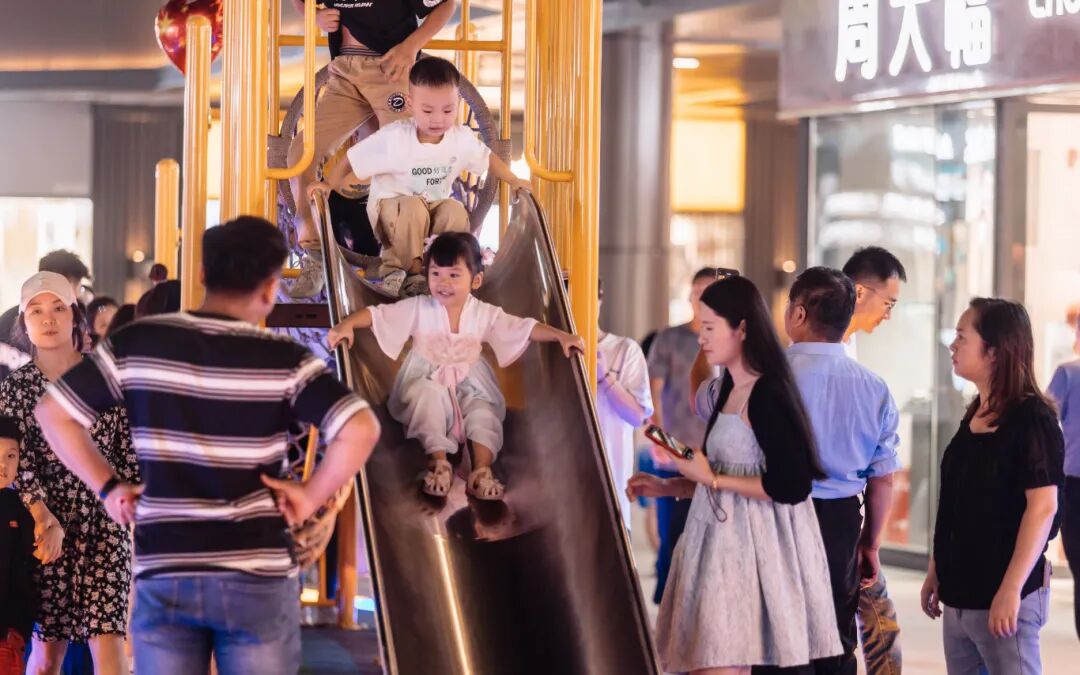 空间是入口。琴湖溪里在商圈多维场景中融合“儿童友好”理念,打造主题乐园、全龄运动场、生态花园益智区等儿童主题的多元空间。主题乐园中,高起点设计的趣味活动区、全龄运动场和生态花园益智区,孩子们在攀爬、滑行和奔跑中释放天性。依湖而建的自然课堂,被繁茂植物和卡通装饰点缀,一年四季都是孩子们观察自然、亲近绿色的课堂。科普增能基地通过主题墙和互动跑道,把科学知识嵌入游戏,让孩子们在玩乐中潜移默化地学习。