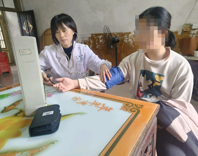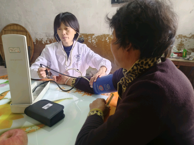 为孙桂萍测量血压、血糖