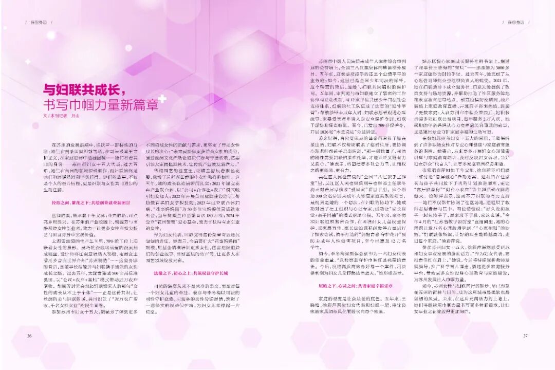 如今,苏州女性与妇联同行的脚步,早已印刻在苏州的街巷与田间,成为这座城市最柔软也最坚韧的风景。未来,在这片充满活力的土地上,她们将继续用巾帼力量书写更多精彩篇章,让妇女事业之花绽放得更加绚烂。