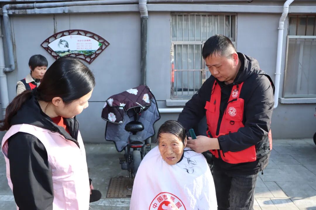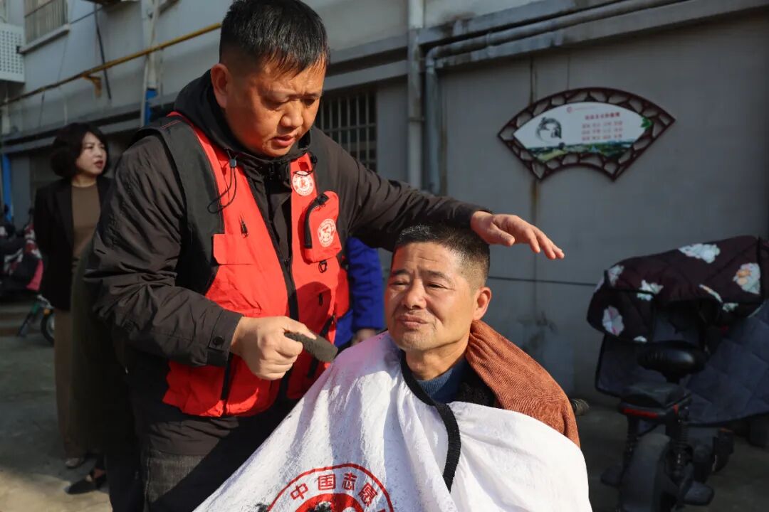“紫薇花开”银龄志愿服务队成员与社区居民暖心交流,畅谈生活趣事、分享生活经验。交流中,还贴心地将涵盖健康知识、反诈常识与儿童安全保护等内容的宣传手册分发到老人手中,将温暖关怀与实用信息一并送达。亭湖区登瀛志愿者协会妇联为老人提供免费理发服务,在精心服务中传承敬老爱老传统。